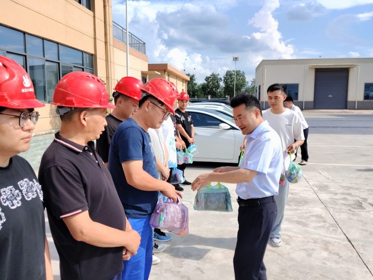 在慰問中朱濤詳細(xì)了解公司工作情況,著重強(qiáng)調(diào)安全生產(chǎn)工作,叮囑大家高溫天氣要做好防暑降溫措施,時(shí)刻把安全生產(chǎn)牢記于心。一份清涼、一份關(guān)愛,集團(tuán)公司對一線職工的關(guān)懷、關(guān)愛送到每位職工的心坎上,極大地鼓舞了職工的士氣和工作熱情。大家紛紛表示今后要以更加飽滿的熱情投入到工作中去,堅(jiān)守崗位、克服高溫,全力以赴做好生產(chǎn)工作。