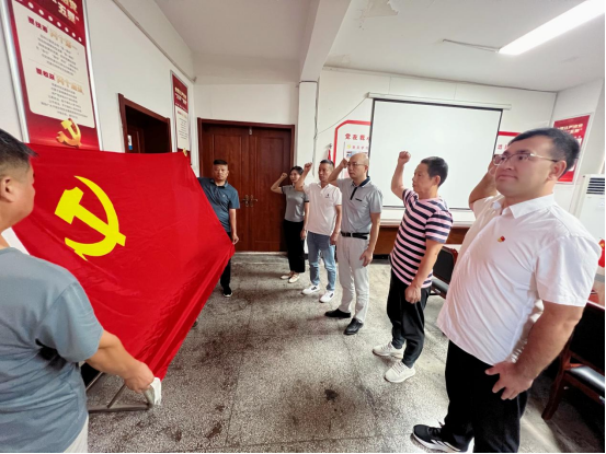 活動開始,全體人員集中觀看紀念中國人民抗日戰(zhàn)爭暨世界反法西斯戰(zhàn)爭勝利80周年大會。觀看過程中,大家保持安靜肅穆,認真感受閱兵儀式所展現(xiàn)出的國家強大軍事力量和軍人昂揚風貌,深刻體會到其背后蘊含的深厚愛國情懷與民族精神。整齊劃一的受閱方陣、先進精良的武器裝備,讓全體黨員心靈受到極大震撼,自豪感油然而生。閱兵儀式結(jié)束后,全體黨員面向鮮紅的黨旗,莊嚴地重溫入黨誓詞。“我志愿加入中國共產(chǎn)黨,擁護黨的綱領……” 鏗鏘有力的誓言在會議室久久回蕩,字字千鈞,叩擊著每位黨員的心靈。這不僅是對初心使命的回溯,更是一次精神的淬煉與升華。