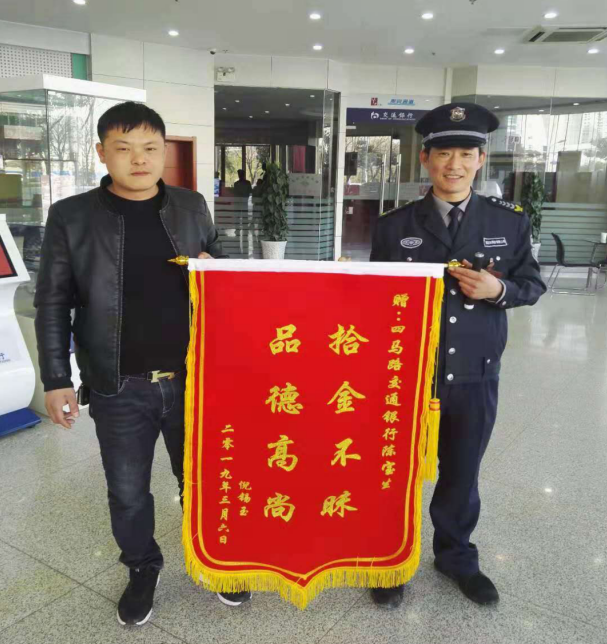 故事發(fā)生在2019年3月4日上午,陳寶生和往常一樣,在交行網(wǎng)點(diǎn)進(jìn)行執(zhí)勤,著突然發(fā)現(xiàn)營(yíng)業(yè)廳門內(nèi)側(cè)有一個(gè)紅色塑料袋,走近一看,里面物品整齊,來不及多想,老陳手握著塑料袋,下意識(shí)的環(huán)顧了四周,并沒看見失主,是誰不小心把東西都丟在這兒了。鎮(zhèn)定一下之后立即上報(bào)中隊(duì),老陳想包里會(huì)不會(huì)有一些證件之類的東西,或許能找到一些失主的線索也不一定。就和班長(zhǎng)一起小心翼翼的打開了袋子,發(fā)現(xiàn)里面都是些合同文件和借條、憑證,價(jià)值等額有200多萬。老陳先把包妥善放好,然后通過調(diào)取監(jiān)控、在網(wǎng)點(diǎn)門口留下信息等方式,積極主動(dòng)尋找失主。功夫不負(fù)有心人終于在下班前與失主倪先生取得聯(lián)系,認(rèn)領(lǐng)物品時(shí)倪先生激動(dòng)的熱淚盈眶,上前緊緊握住了陳寶生的雙手,說:“謝謝……真是太感謝了!我找了好幾天,都是一無所獲,如果這個(gè)包丟失,將造成200多萬元的損失,沒想到遇到了您,讓我說什么好啊!馬上拿出一疊現(xiàn)金送給老陳”