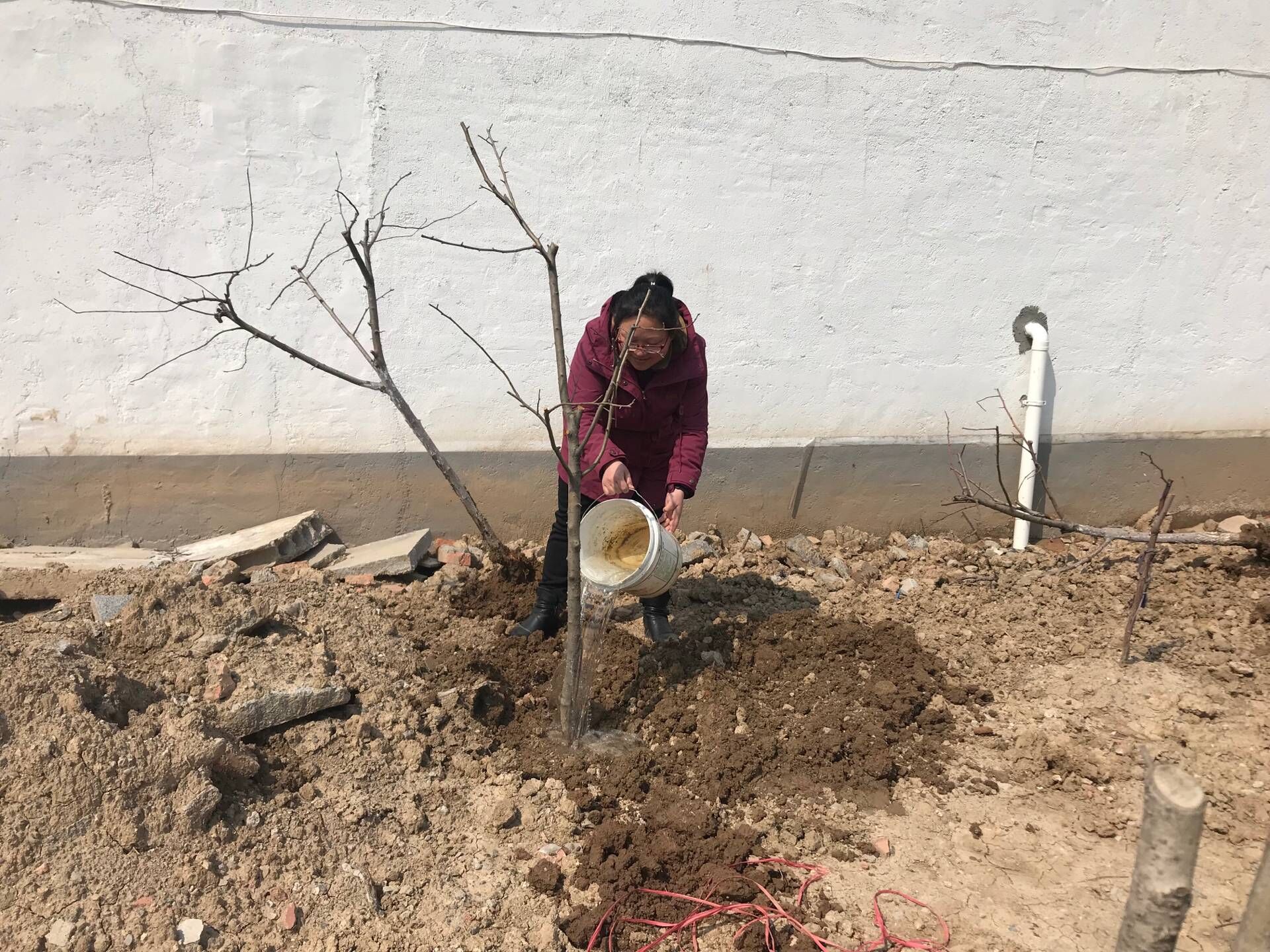 生態(tài)景觀公司扶貧小組一行4人,3月25日驅(qū)車帶著5棵蘋果樹苗來到火神廟村呂秀英老人家進(jìn)行樹苗補(bǔ)種。大家分工植樹,有的挖坑,有的扶樹,有的培土,有的澆水,每道工序有條不紊,一片繁忙。扶貧小組成員不辭辛苦,以實(shí)際行動(dòng)投身到扶貧工作中去,為貧困戶獻(xiàn)出一份愛心,點(diǎn)燃一盞希望。助力貧困戶加快脫貧致富步伐,共同邁入全面小康。